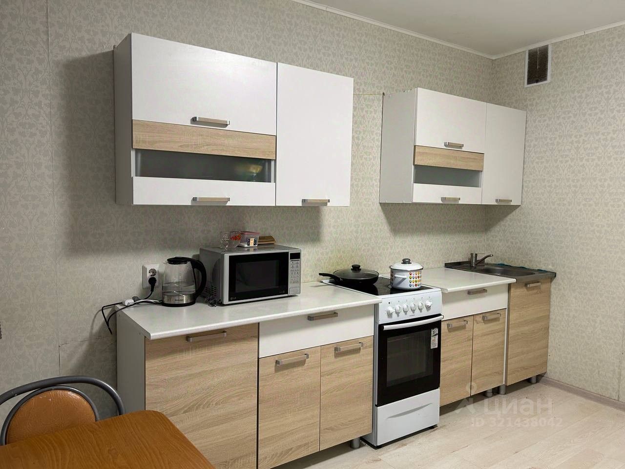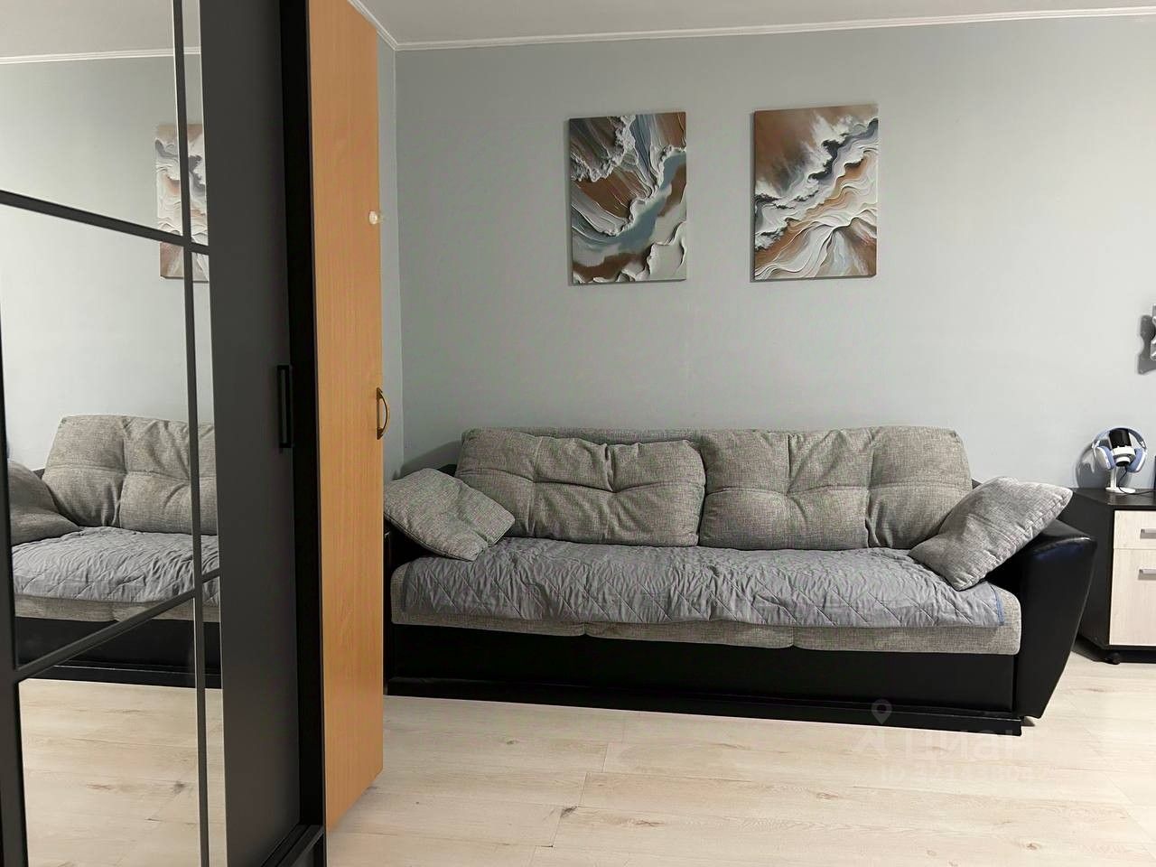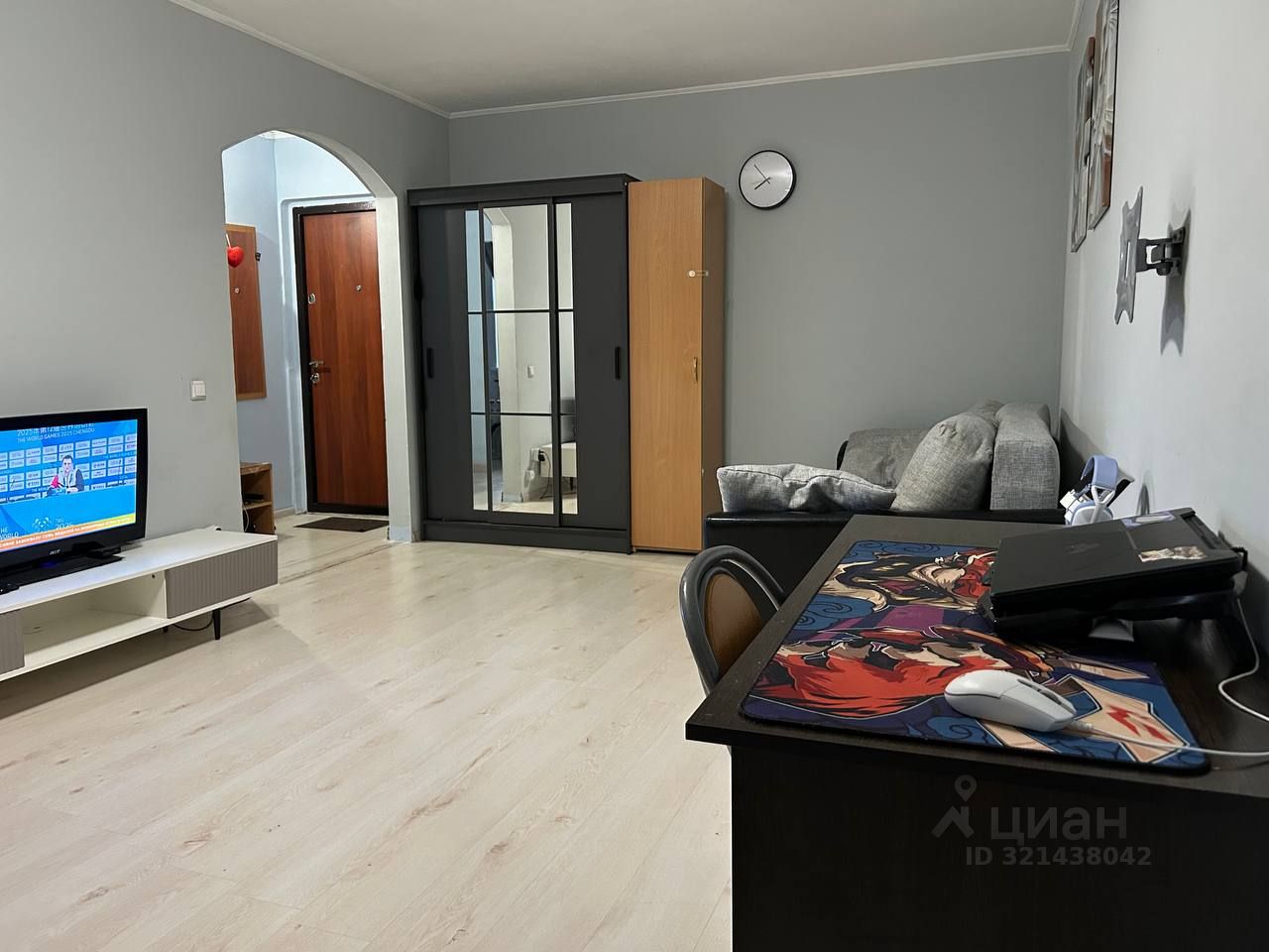 В квартире сделан косметический ремонт, она полностью готова к проживанию. Установлены кондиционер, холодильник, телевизор и стиральная машина. В комнате и на кухне есть вся необходимая мебель. Совмещенный санузел оборудован ванной. Также имеется балкон, где можно приятно провести время.