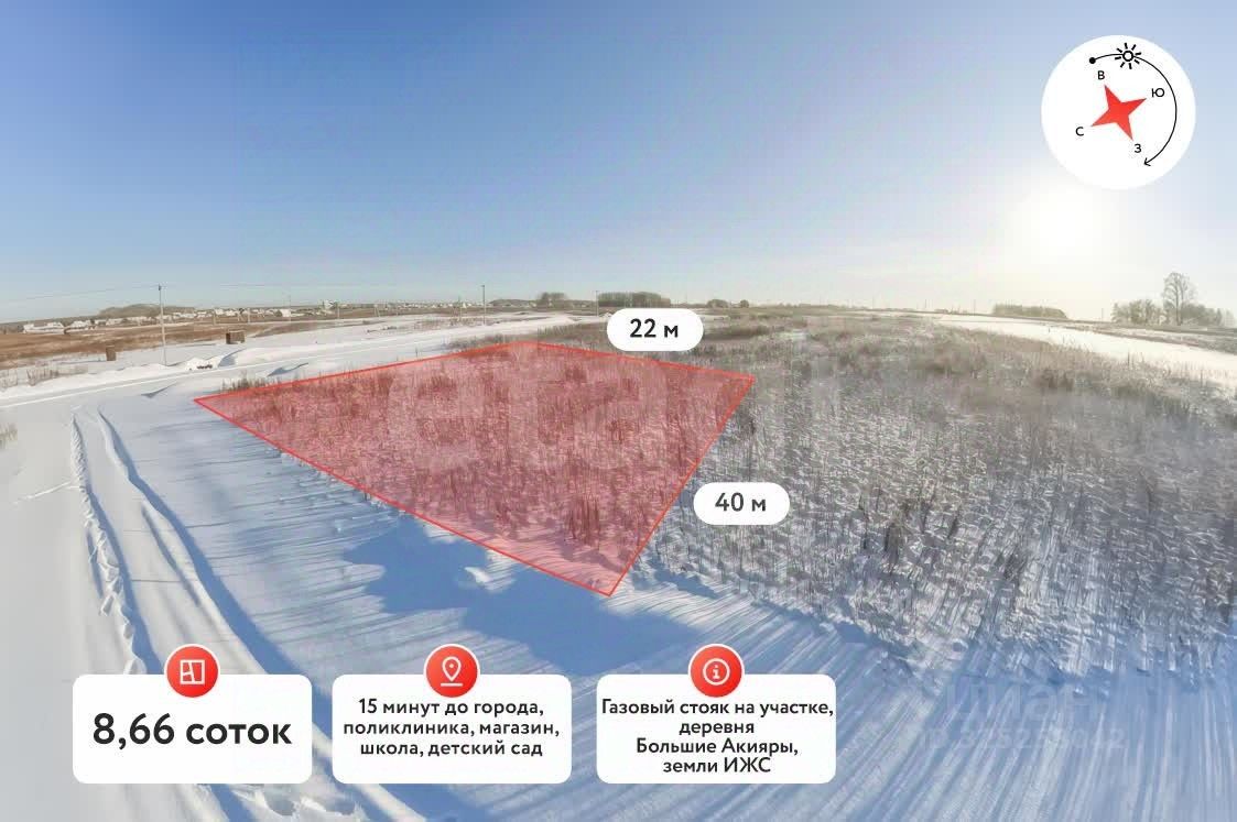 продам земельный участок, Большие Акияры1 250 000 ₽