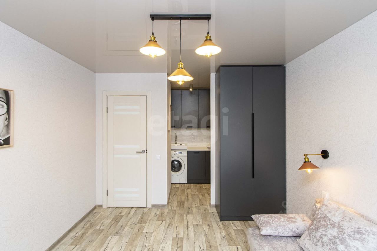 Студия с новым, современным ремонтом. Полноценный санузел полностью с новой установленной сантехникой и новой стиральной машинкой. В квартире новый диван, кондиционер и новый кухонный гарнитур. Также покупателю в подарок остается холодильник !