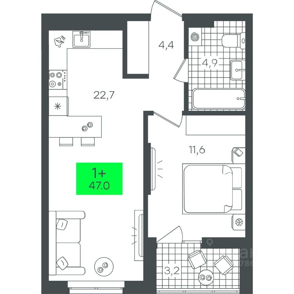 Продаётся 1-комнатная квартира в строящемся доме (3-В7.1 (Малкова, 17)), срок сдачи: III-кв. 2026, общей площадью 47.04 кв.м., на 11 этаже. Компания 4D приступила к строительству нового жилого комплекса ''Гранд квартал''. Новый ЖК находится в зеленой зоне Калининского района, южнее микрорайона Тюменская слобода.