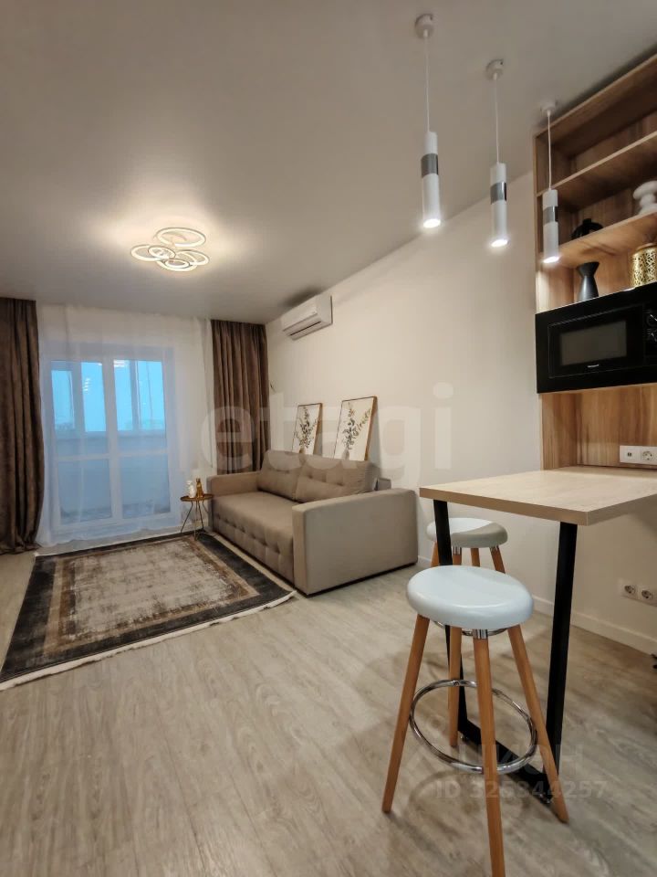 Предлагаю вашему вниманию идеальную квартиру-студию в одном из самых популярных востребованных районов города - Тюменский-3! Идеальное состояние новой квартиры - никто не успел пожить. Свежий ремонт в нейтральной цветовой гамме. Кварцвенил на полу, проходные выключатели, стены под окраску , новый кухонный гарнитур на заказ, встроенный холодильник, варочная поверхность, духовка, вытяжка, посудомойка, кондеционер, диван, барная стойка со стульями, вобщем все что необходимо для комфортной жизни. Высокий этаж с приятными видами с балкона, над вами никаких соседей! Новый ЖК комфорт-класса Кристалл в кирпично-монолитном исполнении.