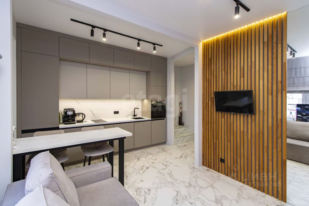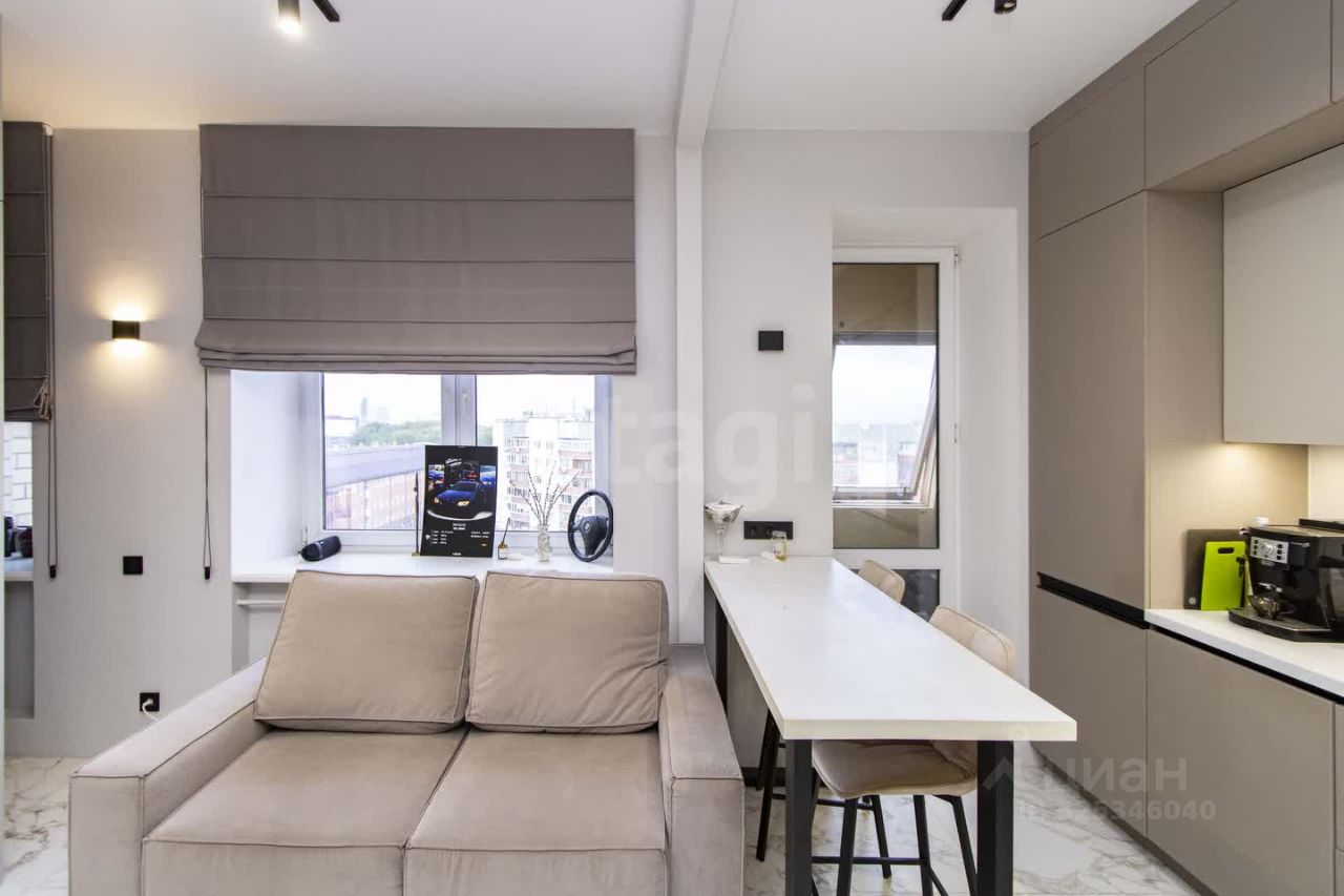 Большая кухня-гостиная с двумя окнами и балконом, с выделенной спальной зоной. В спальне отделена рабочая зона, выход на собственную террасу с шикарным видом. В просторном санузле с окном установлена ванна-джакузи и душевая кабина. Квартира с качественным ремонтом, с современной мебелью и техникой! Безопасный уютный двор с закрытой территорией. Дом из кирпича, мраморные лестничные пролеты в подъезде. Хорошие соседи.