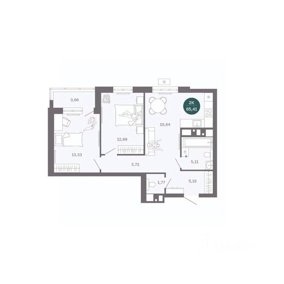 Общая площадь65,43 м2