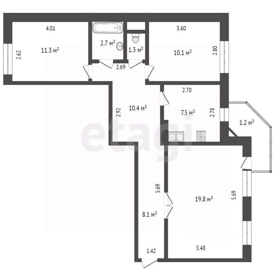 продам 3-к, Николая Чаплина, 1175 200 000 ₽