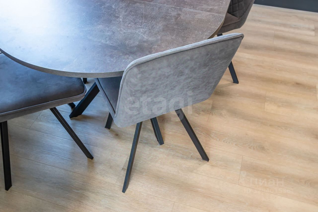 В квартире выполнен современный ремонт, с использованием качественных отделочных материалов. Во всех трех комнатах установлены кондиционеры. Установлены фильтры для воды и проточная нагревательная система в ванной. На стенах красивые обои, на полу кварцвинил, матовые натяжные потолки, установлены межкомнатные двери. В кухне-гостиной трекинговая система освещения.