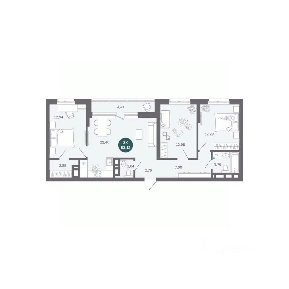 Общая площадь83,12 м2