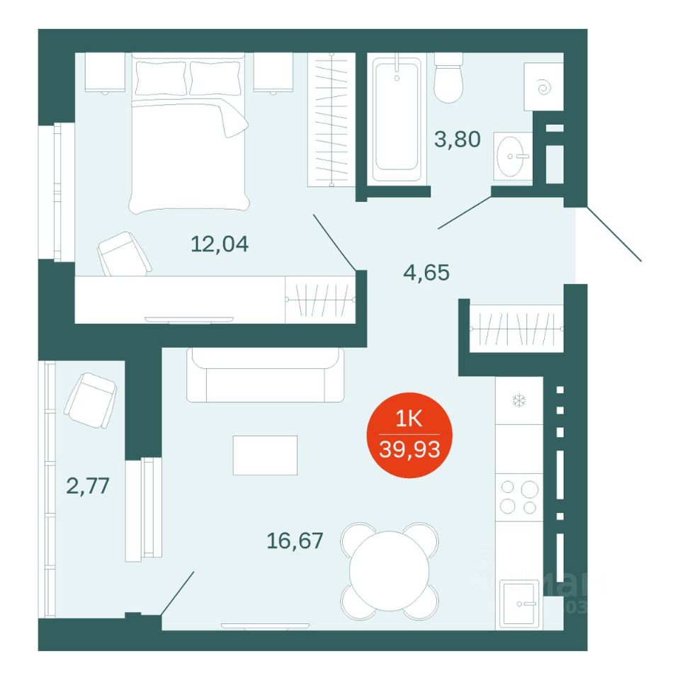Общая площадь39,93 м2