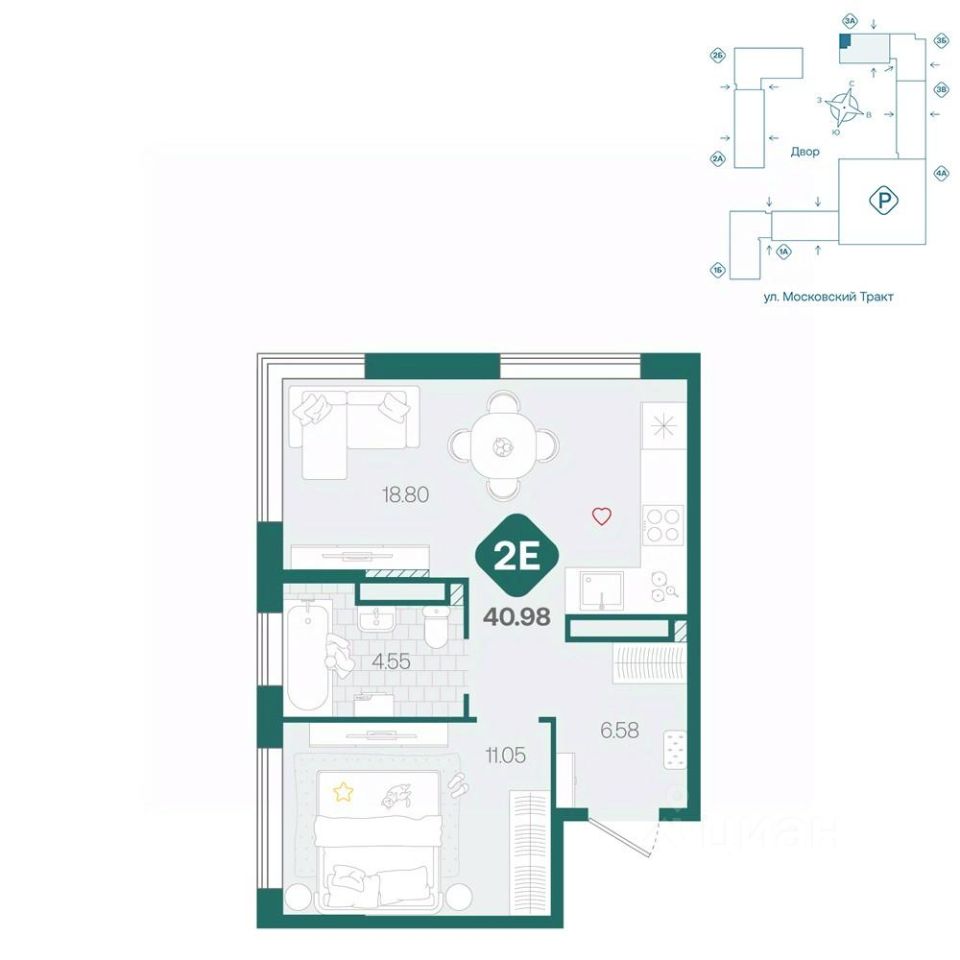 продам 2-к, Московский тракт, 17145 091 200 ₽