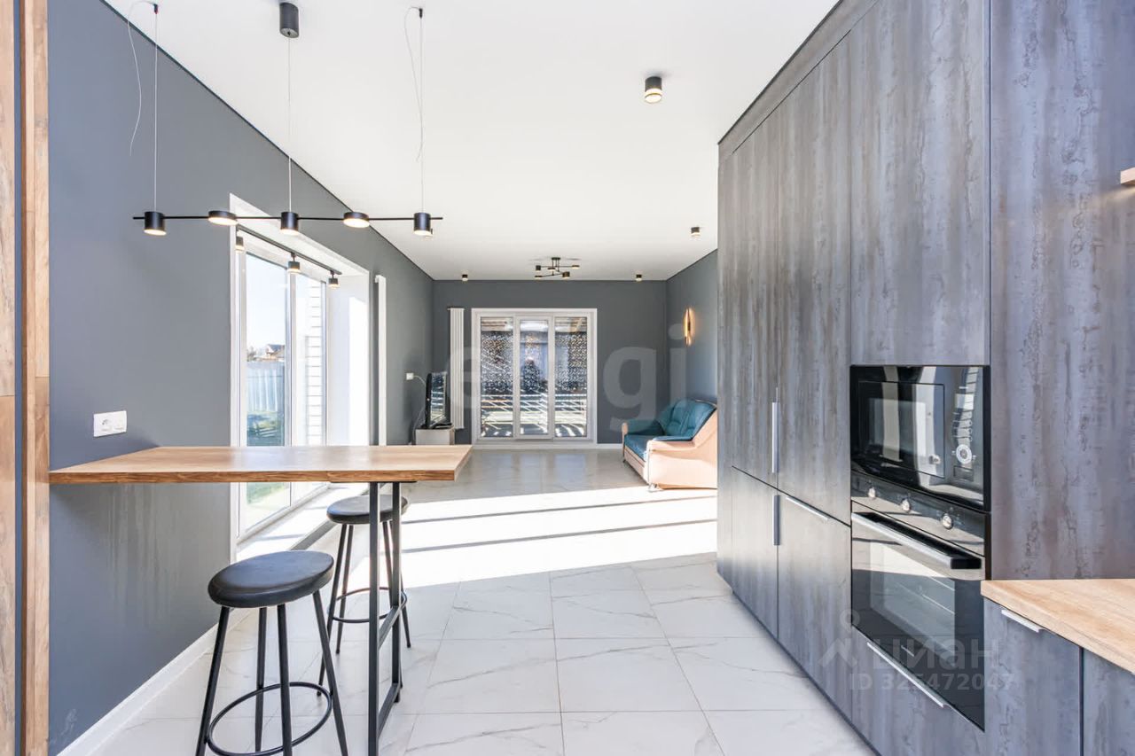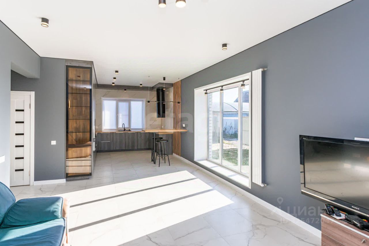 Интерьер: Ремонт уже готов! Встроенная кухня с техникой, санузел, котельная с инсталляциями. 3 спальни + большая кухня-гостиная 30 м² с выходом на крытую террасу. Тёплый пол по всему дому + радиаторы. Есть возможность подключить газ и центральную воду.