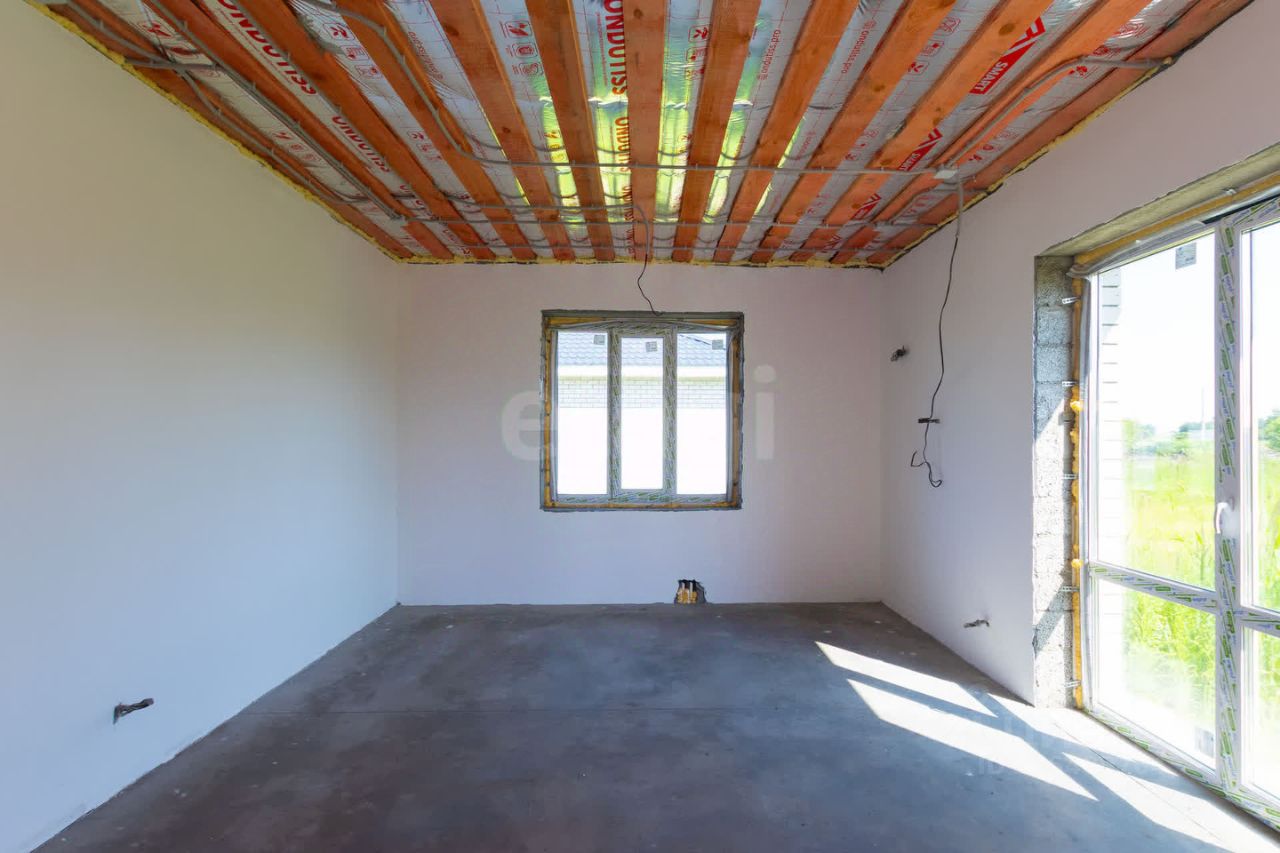 Отделка: улучшенная черновая. Стены белые, оштукатурены и зашпатлеваны, подготовленные под обои. Пол теплый водяной по всему дому. Залита стяжка. Электрика разведена по дому, розеток достаточно во всех комнатах.