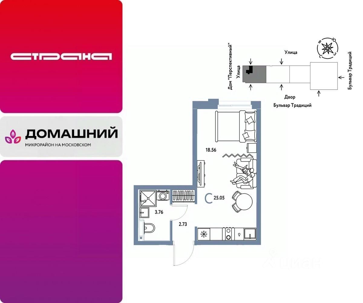 Продается 1комнатная квартира на 7 этаже от застройщика Страна Девелопмент. Площадь квартиры 25,05 кв. м.