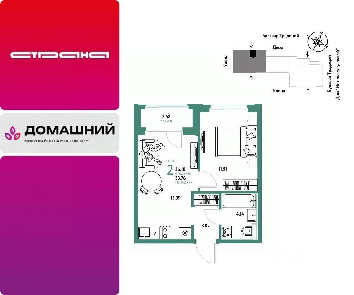 Продается 2комнатная квартира на 8 этаже от застройщика Страна Девелопмент. Площадь квартиры 36,18 кв. м. Стоимость указана без учета акций.