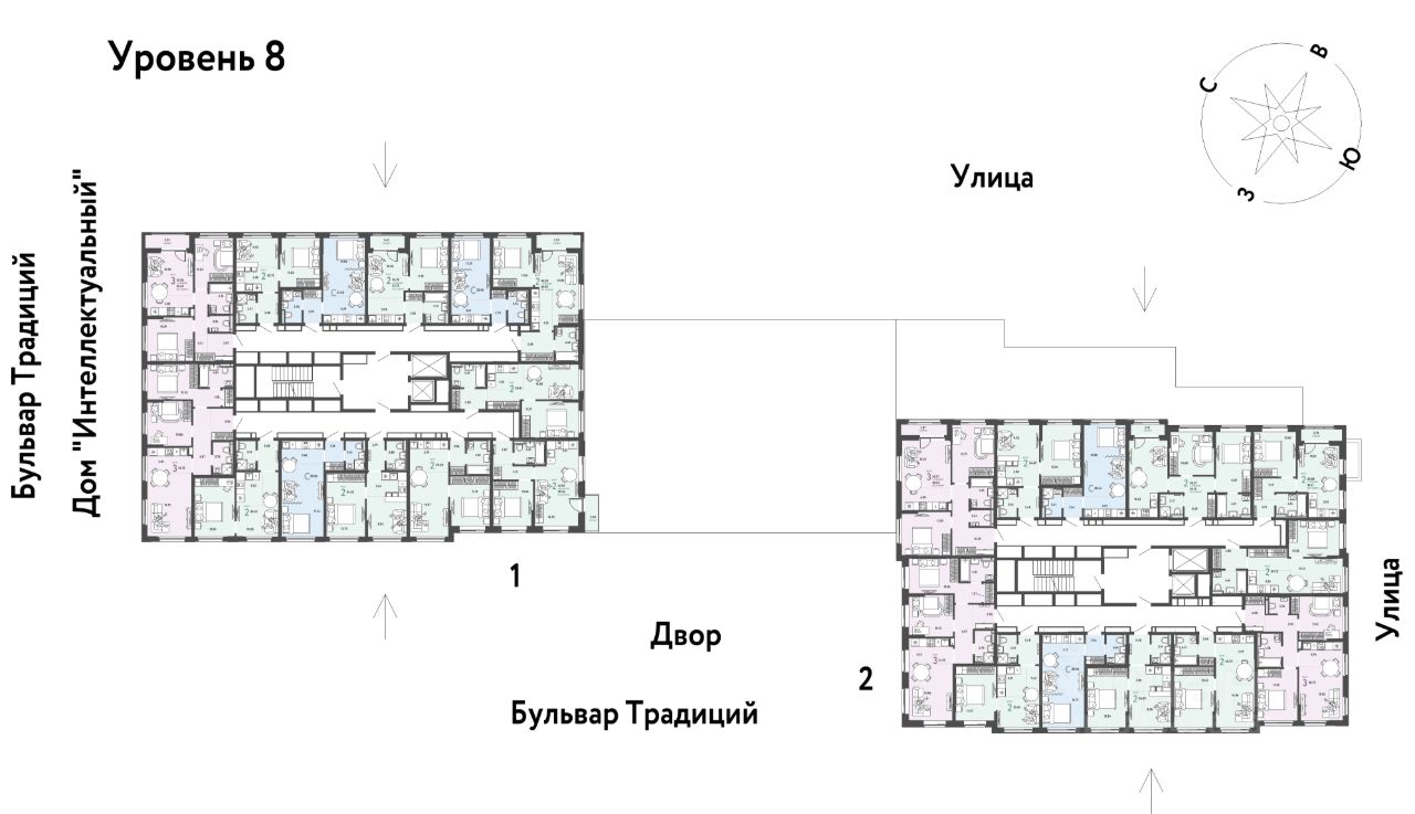 ПРЕИМУЩЕСТВА: -Школа, зеленый сквер и пешеходный бульвар прямо внутри квартала -Закрытые дворы у каждого дома для активного и спокойного отдыха -Охрана, видеонаблюдение 24/7 и доступ к камерам в мобильном приложении -Сквозные парадные с прозрачными входными группами, колясочными и велосипедными -Паркинг с въездом по считыванию номеров, системой контроля выбросов CO2, тележками для покупок и велопарковкой -Торговая галерея на первом этаже дома