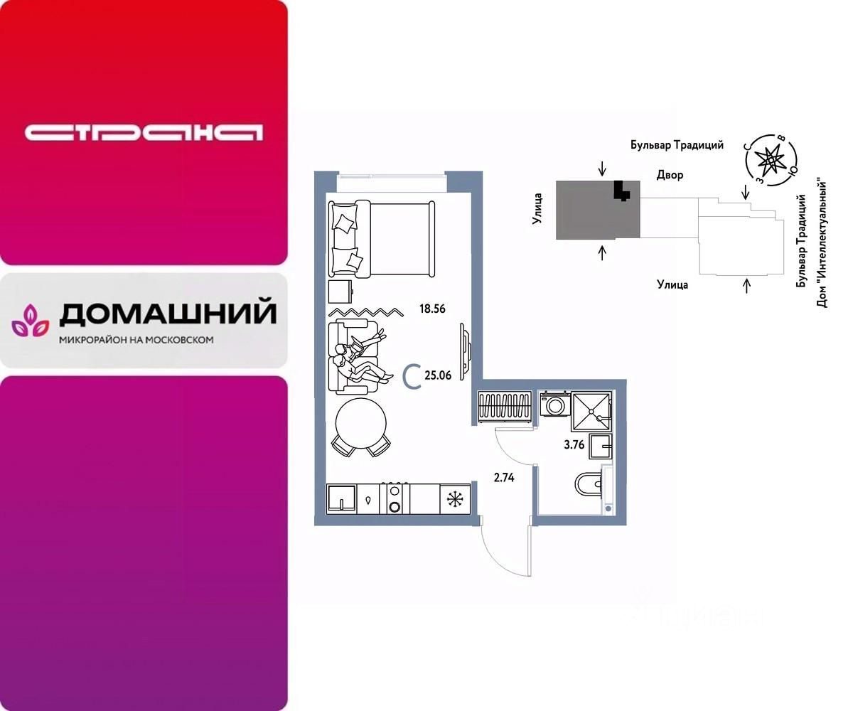 Продается 1комнатная квартира на 14 этаже от застройщика Страна Девелопмент. Площадь квартиры 25,06 кв. м. Стоимость указана без учета акций.