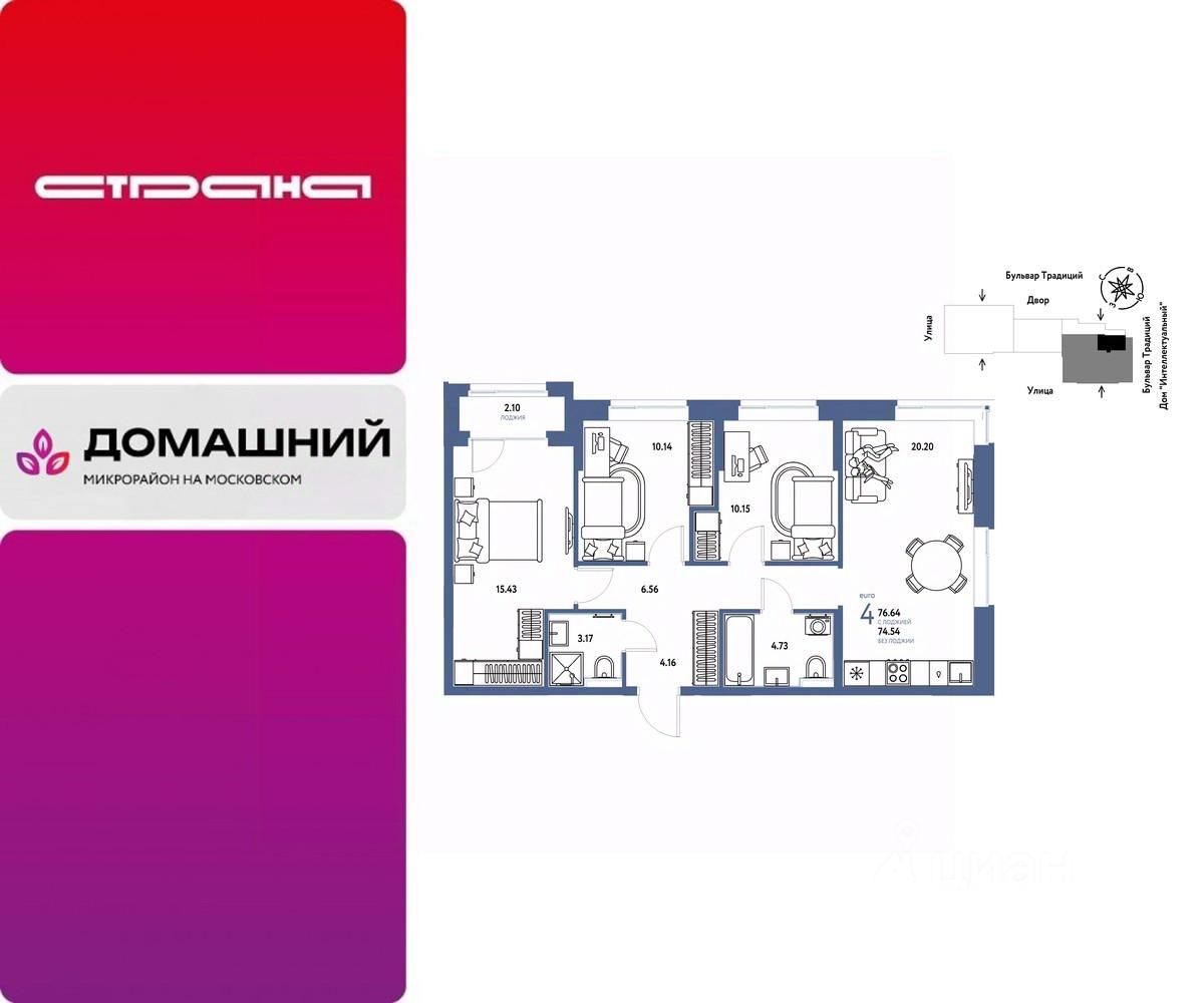 Продается 4комнатная квартира на 13 этаже от застройщика Страна Девелопмент. Площадь квартиры 76,64 кв. м. Стоимость указана без учета акций.