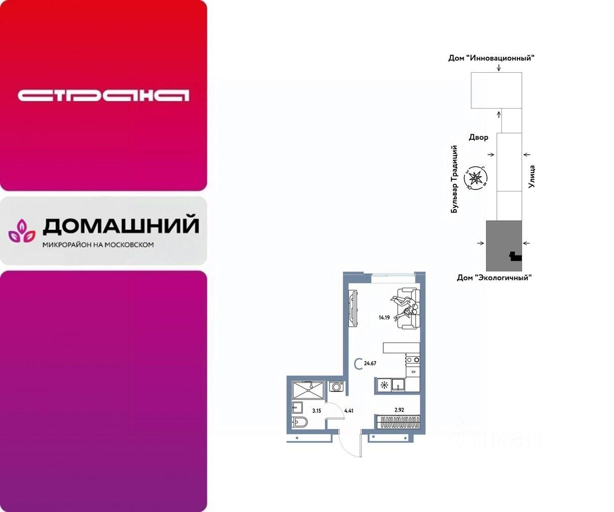 Продается 1комнатная квартира на 5 этаже от застройщика Страна Девелопмент. Площадь квартиры 24,67 кв. м.