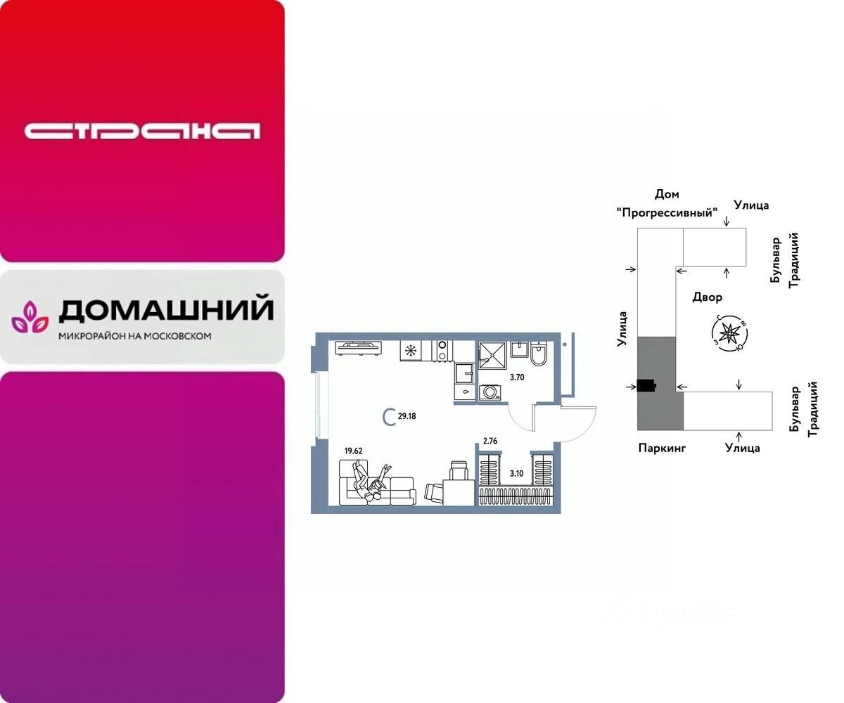 Продается 1комнатная квартира на 13 этаже от застройщика Страна Девелопмент. Площадь квартиры 29,18 кв. м.