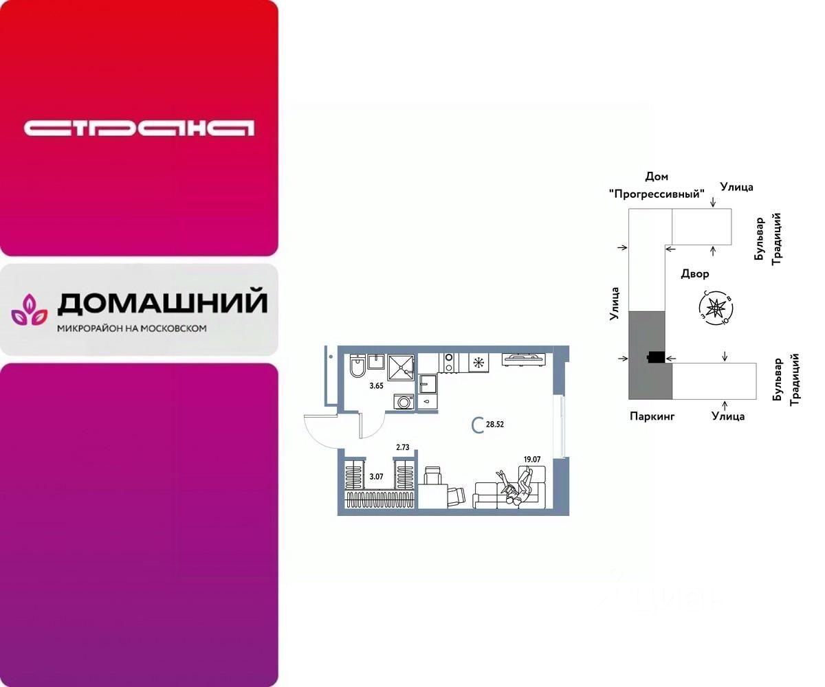 Продается 1комнатная квартира на 12 этаже от застройщика Страна Девелопмент. Площадь квартиры 28,52 кв. м.