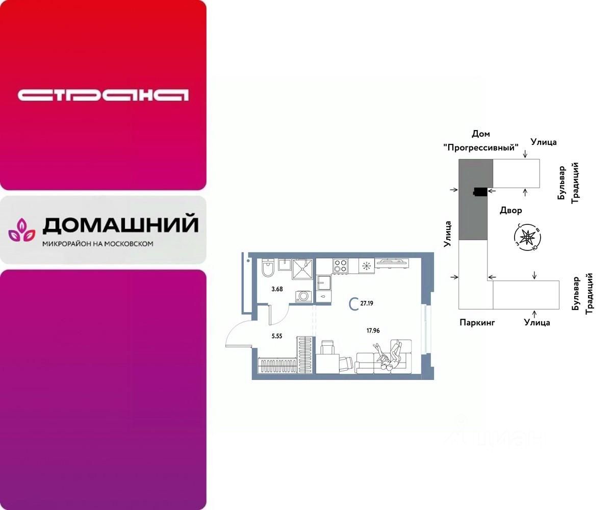 Продается 1комнатная квартира на 8 этаже от застройщика Страна Девелопмент. Площадь квартиры 27,19 кв. м.
