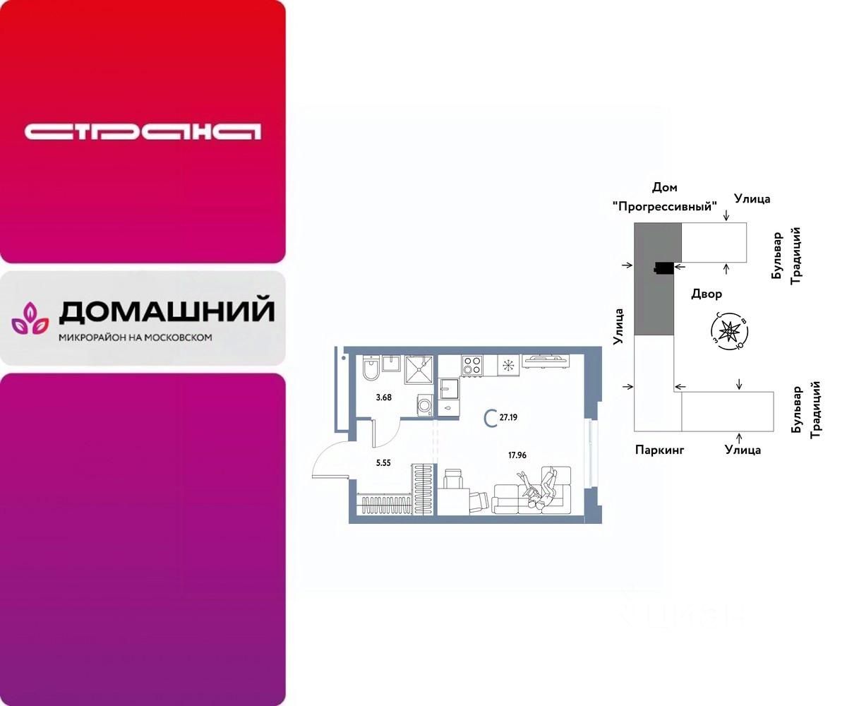 Продается 1комнатная квартира на 12 этаже от застройщика Страна Девелопмент. Площадь квартиры 27,19 кв. м.