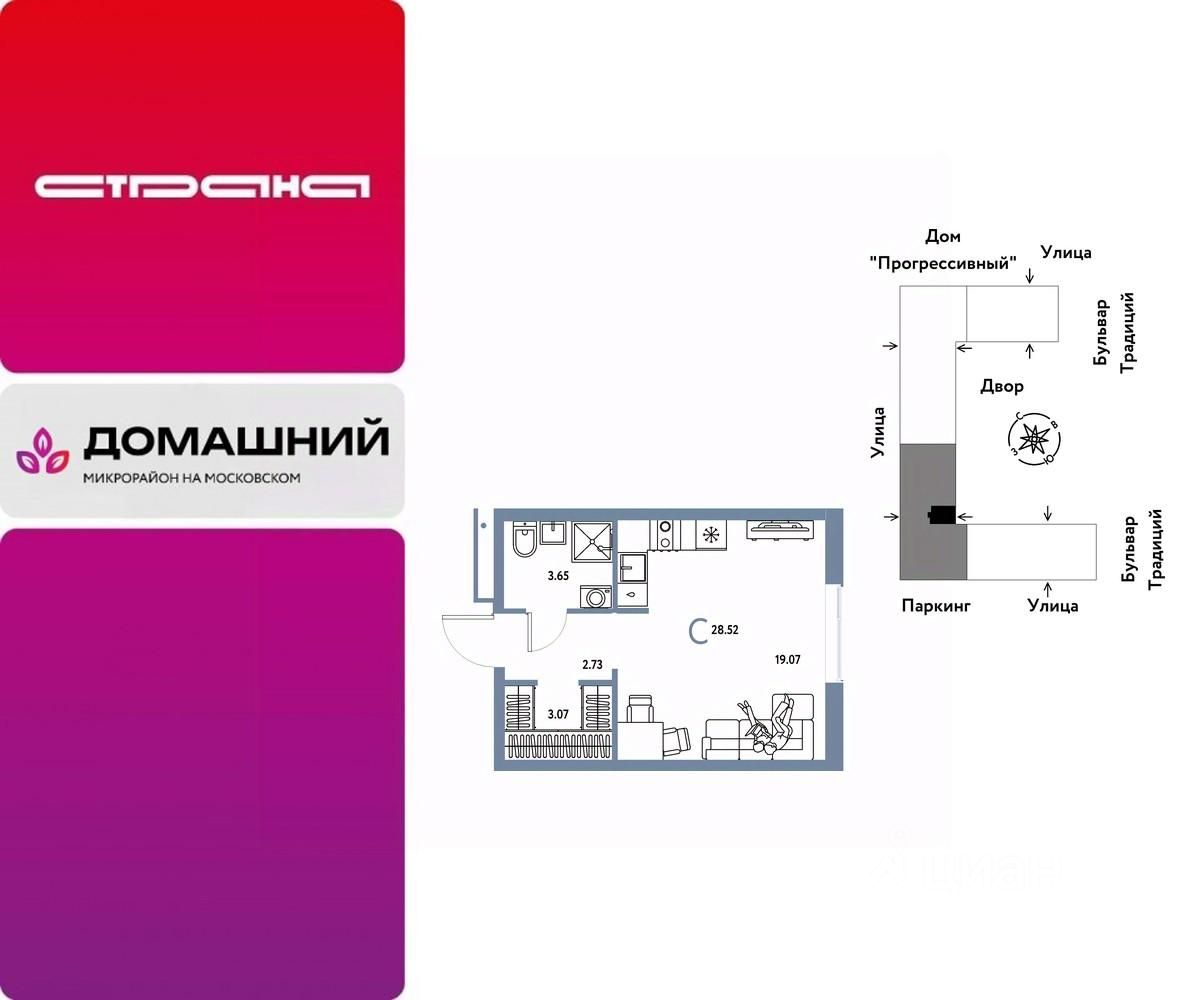 Продается 1комнатная квартира на 2 этаже от застройщика Страна Девелопмент. Площадь квартиры 28,52 кв. м.