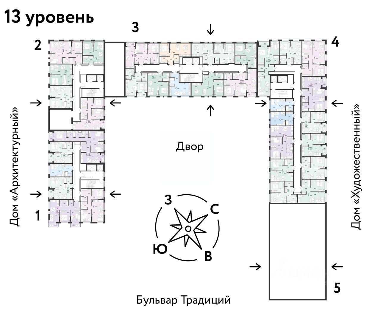 ПРЕИМУЩЕСТВА -Школа, зеленый сквер и пешеходный бульвар прямо внутри квартала -Закрытые дворы у каждого дома для активного и спокойного отдыха -Охрана, видеонаблюдение 24/7 и доступ к камерам в мобильном приложении -Сквозные парадные с прозрачными входными группами, колясочными и велосипедными -Паркинг с въездом по считыванию номеров, системой контроля выбросов CO2, тележками для покупок и велопарковкой -Торговая галерея на первом этаже дома