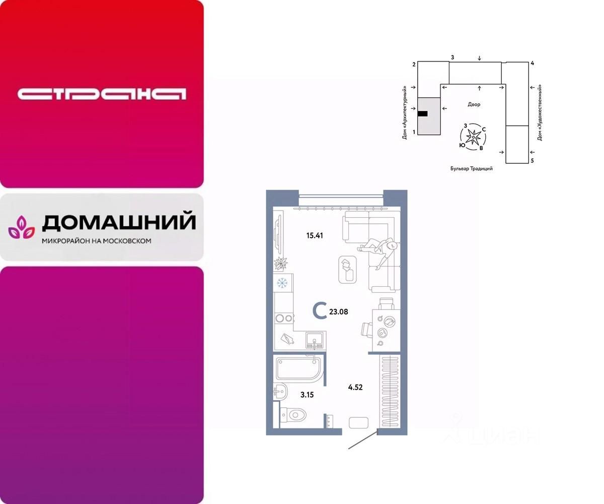 Продается 1комнатная квартира на 13 этаже от застройщика Страна Девелопмент. Площадь квартиры 23,08 кв. м.