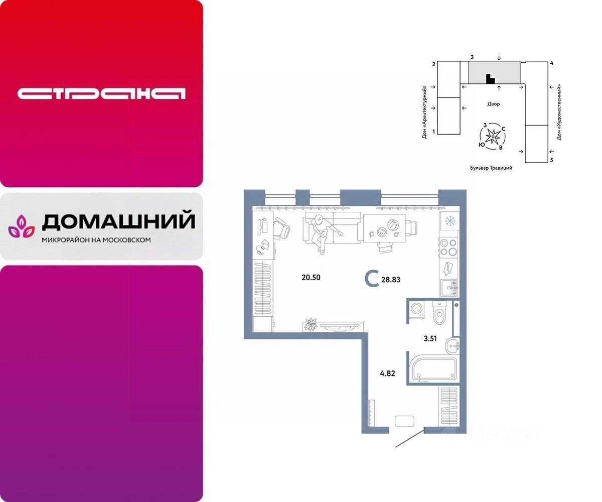 Продается 1комнатная квартира на 12 этаже от застройщика Страна Девелопмент. Площадь квартиры 28,83 кв. м.