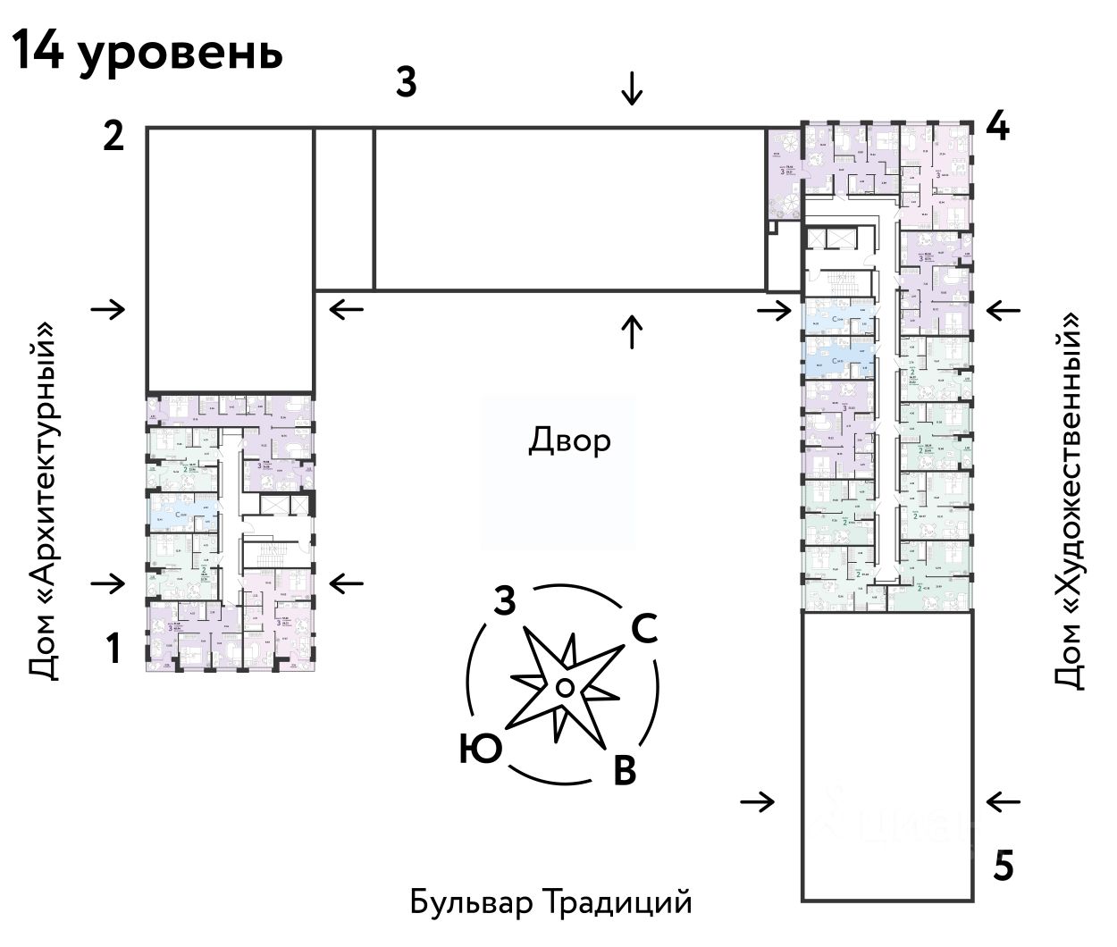 ПРЕИМУЩЕСТВА -Школа, зеленый сквер и пешеходный бульвар прямо внутри квартала -Закрытые дворы у каждого дома для активного и спокойного отдыха -Охрана, видеонаблюдение 24/7 и доступ к камерам в мобильном приложении -Сквозные парадные с прозрачными входными группами, колясочными и велосипедными -Паркинг с въездом по считыванию номеров, системой контроля выбросов CO2, тележками для покупок и велопарковкой -Торговая галерея на первом этаже дома
