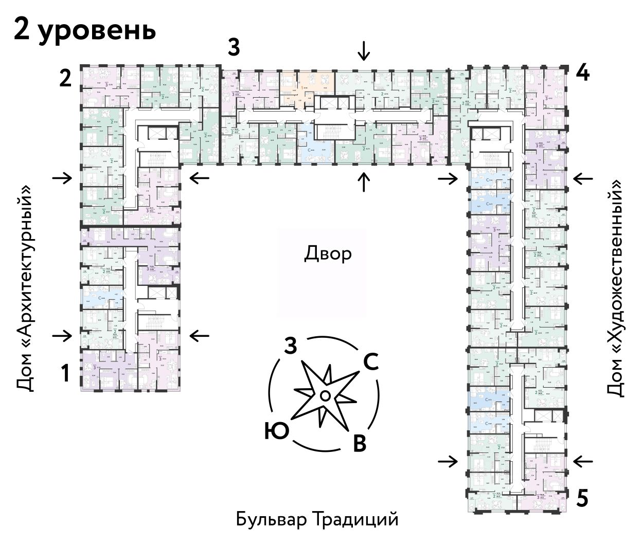 ПРЕИМУЩЕСТВА -Школа, зеленый сквер и пешеходный бульвар прямо внутри квартала -Закрытые дворы у каждого дома для активного и спокойного отдыха -Охрана, видеонаблюдение 24/7 и доступ к камерам в мобильном приложении -Сквозные парадные с прозрачными входными группами, колясочными и велосипедными -Паркинг с въездом по считыванию номеров, системой контроля выбросов CO2, тележками для покупок и велопарковкой -Торговая галерея на первом этаже дома