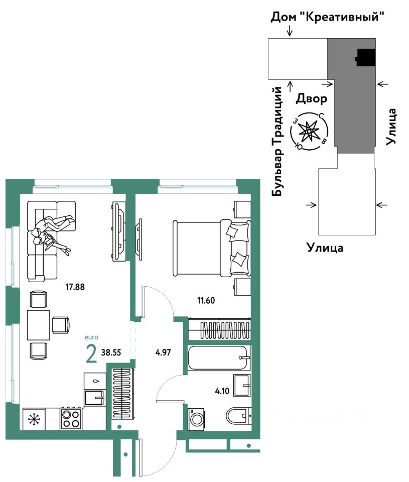 ПРЕИМУЩЕСТВА -Школа, зеленый сквер и пешеходный бульвар прямо внутри квартала -Закрытые дворы у каждого дома для активного и спокойного отдыха -Охрана, видеонаблюдение 24/7 и доступ к камерам в мобильном приложении -Сквозные парадные с прозрачными входными группами, колясочными и велосипедными -Паркинг с въездом по считыванию номеров, системой контроля выбросов CO2, тележками для покупок и велопарковкой -Торговая галерея на первом этаже дома