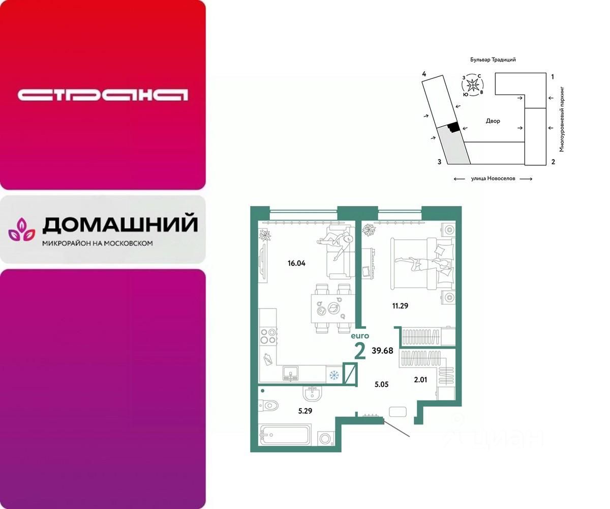 Продается 2комнатная квартира на 6 этаже от застройщика Страна Девелопмент. Площадь квартиры 39,68 кв. м.
