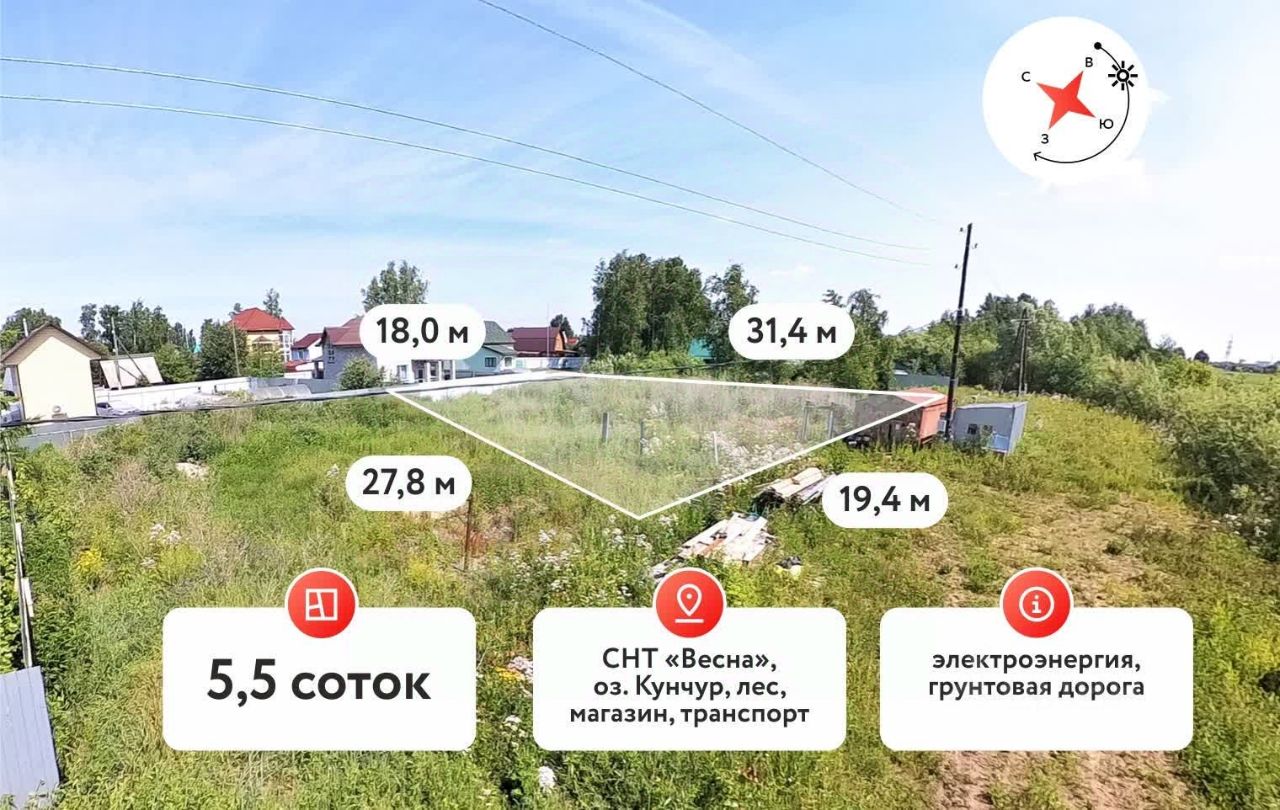 Дорога (асфальт, асфальтовая крошка, щебень) до участка доступна дорога в любое время года. Зимой дороги чистят нет проблем с въездом и выездом, рядом живописное озеро Кунчур для тех людей которые увлекаются рыбалкой. До центра города 15 минут на автобусе 17.