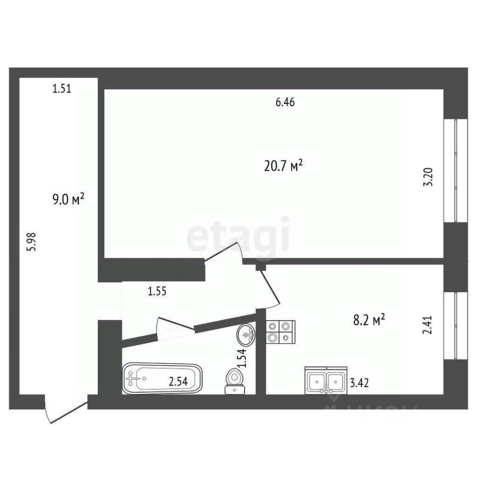 - площадь 43,2 кв.м.