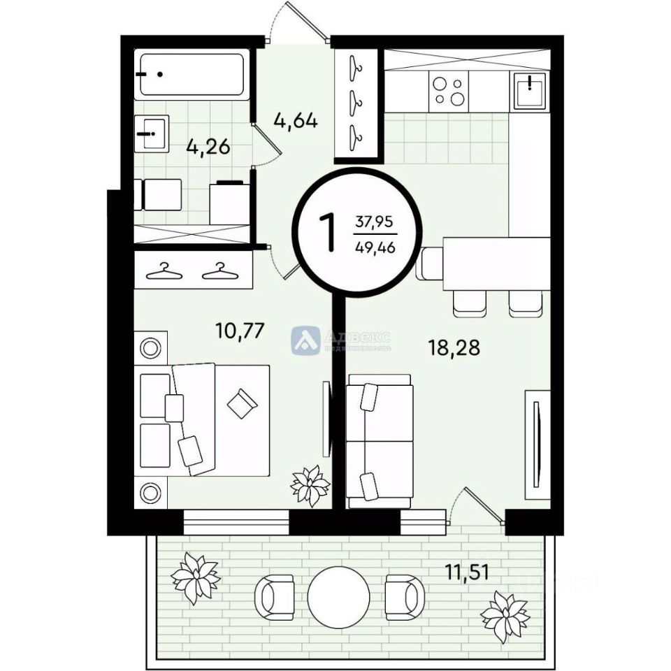 Предлагается к продаже уютная 1-комнатная квартира в новостройке малоэтажного жилого комплекса европейского формата, созданного для комфортной и современной жизни, в 15 минутах от центра Тюмени. Представленное жилье имеет ряд существенных преимуществ: функциональная планировка площадью 49,46 кв.м., где каждая деталь создана для максимального удобства. дом монолитно-каркасного исполнения с большими оконными проемами, которые обеспечат обилие естественного света. 1 этаж - удобство для проживания. комната площадью 10,77 кв.м. - уютное пространство для отдыха. просторная кухня-гостиная площадью 18,28 кв.м. с выходом на террасу - место для семейных посиделок и встреч с друзьями. совмещенный санузел, площадь которого позволит реализовать собственный дизайн по установке приборов и техники. терраса площадью 11,51 кв.м. - дополнительное пространство для отдыха и релакса. уютная прихожая с нишей под размещение шкафа, что обеспечит порядок в хранении вещей. квартира реализуется с черновой отделкой, что позволит воплотить свои дизайнерские замыслы и создать пространство отвечающее вашему сценарию жизни. наличие современной системы ''умный дом'', которая обеспечит полный контроль над климатом и расходом электроэнергии прямо со смартфона. закрытый двор полностью свободный от машин - безопасность для детей и родителей. Это отличное предложение для тех, кому важен комфорт и удобство. Квартира идеально подойдет для молодой семьи, молодых людей, а также для людей серебряного возраста. Квартира предлагает идеальное сочетание цены и качества.