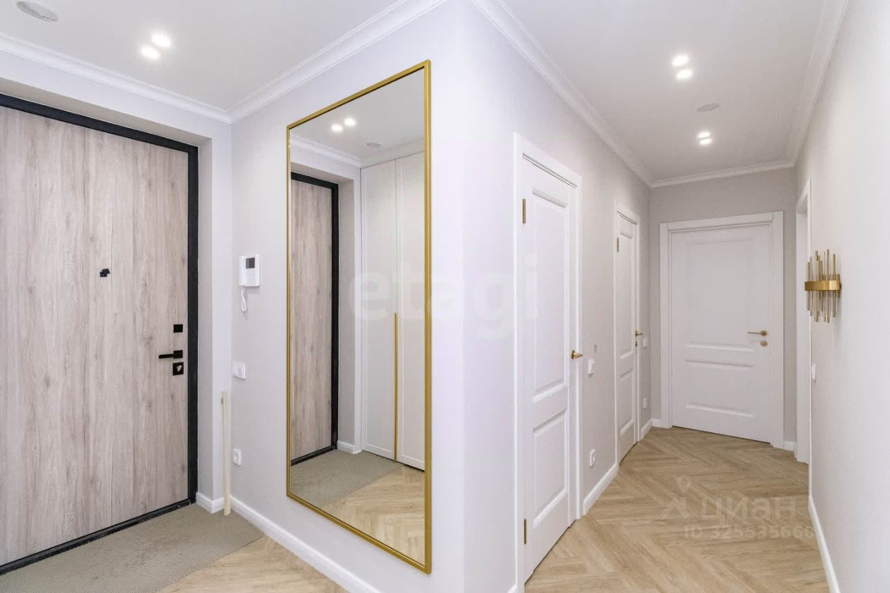 Квартира площадью 79,2 м² с продуманной европланировкой (3 комнаты + просторная кухня-гостиная) предлагается с дизайнерским ремонтом и полной комплектацией мебелью и техникой. Вся отделка выполнена с применением экологичных материалов: датская краска Flugger, бельгийские 3D-панели Orac Decor, износостойкий кварцвинил 43 класса. Кухня оборудована встроенной техникой Bosch (индукционная плита, духовой шкаф, посудомоечная машина) и холодильником Liebherr, гармонично интегрированным в мебельный гарнитур. Два санузла с авторской отделкой оснащены качественной сантехникой и мебелью на заказ.