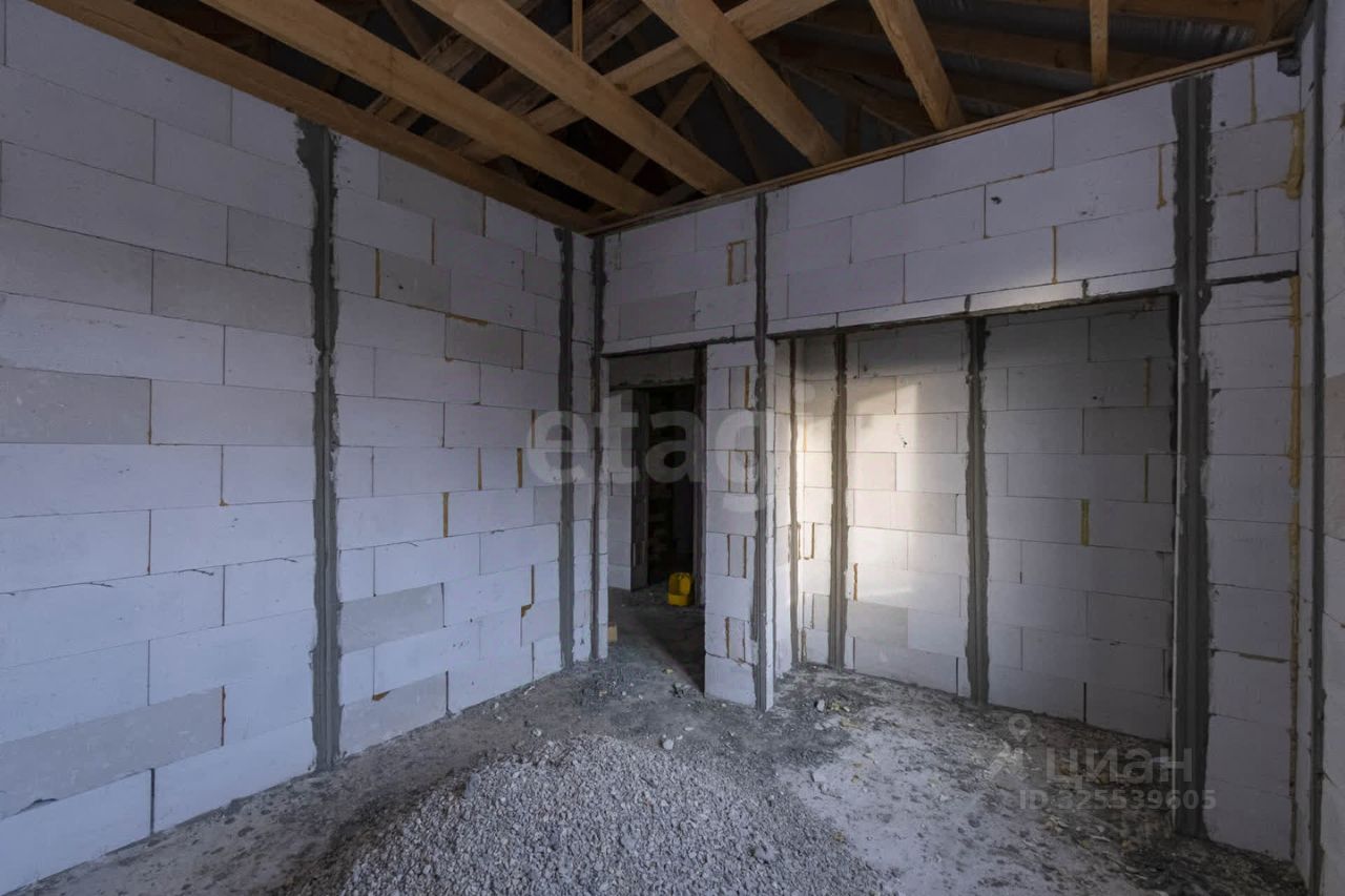 О ДОМЕ: Дом недостроенный. Стены возведены, дом под крышей. Фундамент монолитная плита с коммуникациями. Материал стен - газосиликатные блоки, утеплитель, фасад - облицовочный кирпич. Кровля - мягкая черепица. На участок заведен газ, электричество, центральный водопровод.