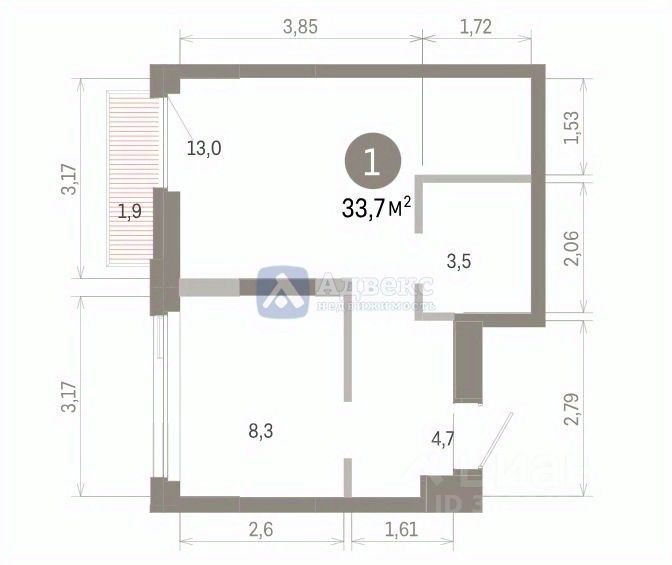 продам 1-к, Мысовская, 16837 030 000 ₽