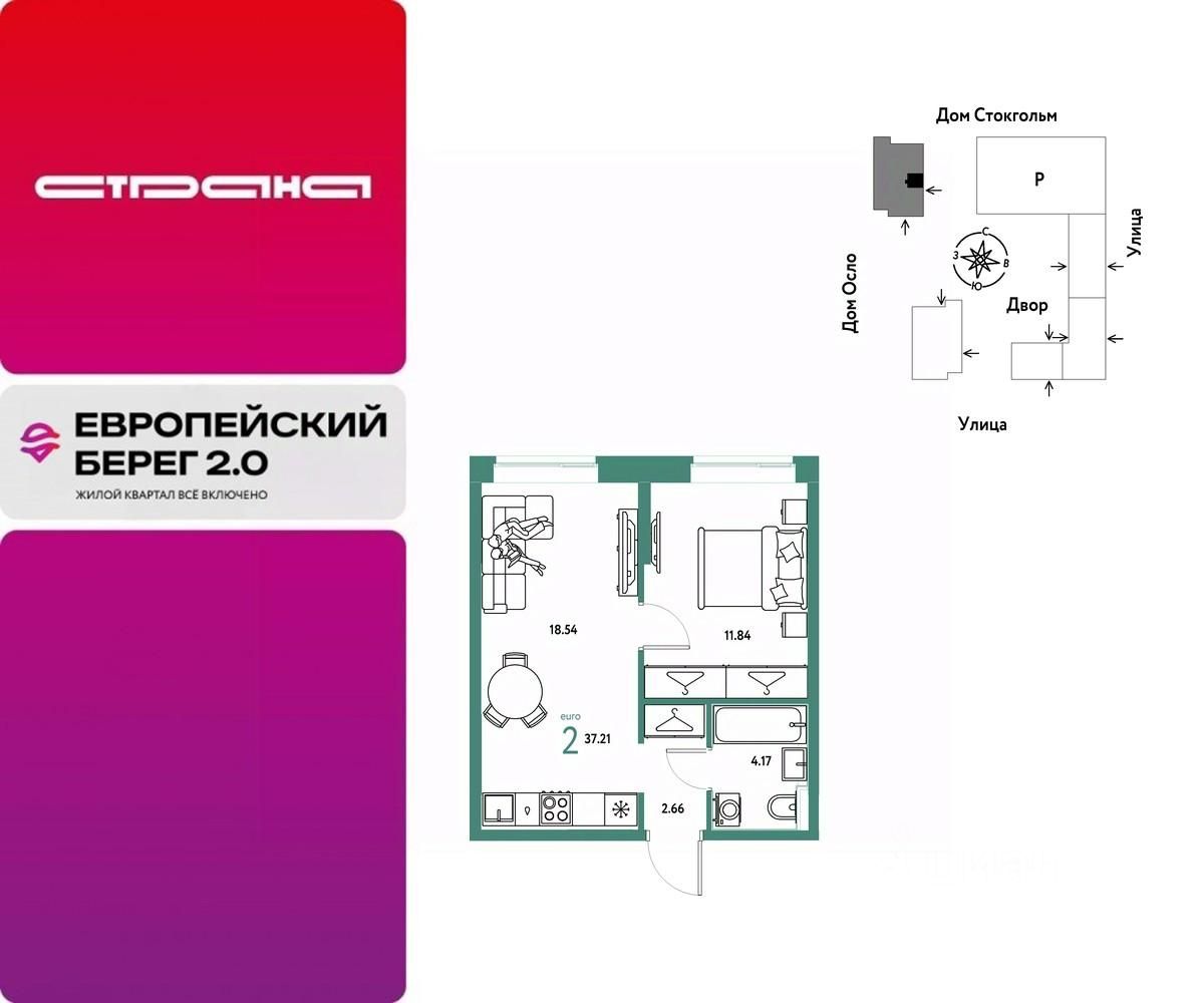 Продается 2комнатная квартира на 19 этаже от застройщика Страна Девелопмент. Площадь квартиры 37,21 кв. м.