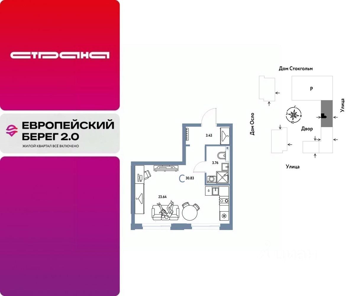 Продается 1комнатная квартира на 15 этаже от застройщика Страна Девелопмент. Площадь квартиры 30,83 кв. м.