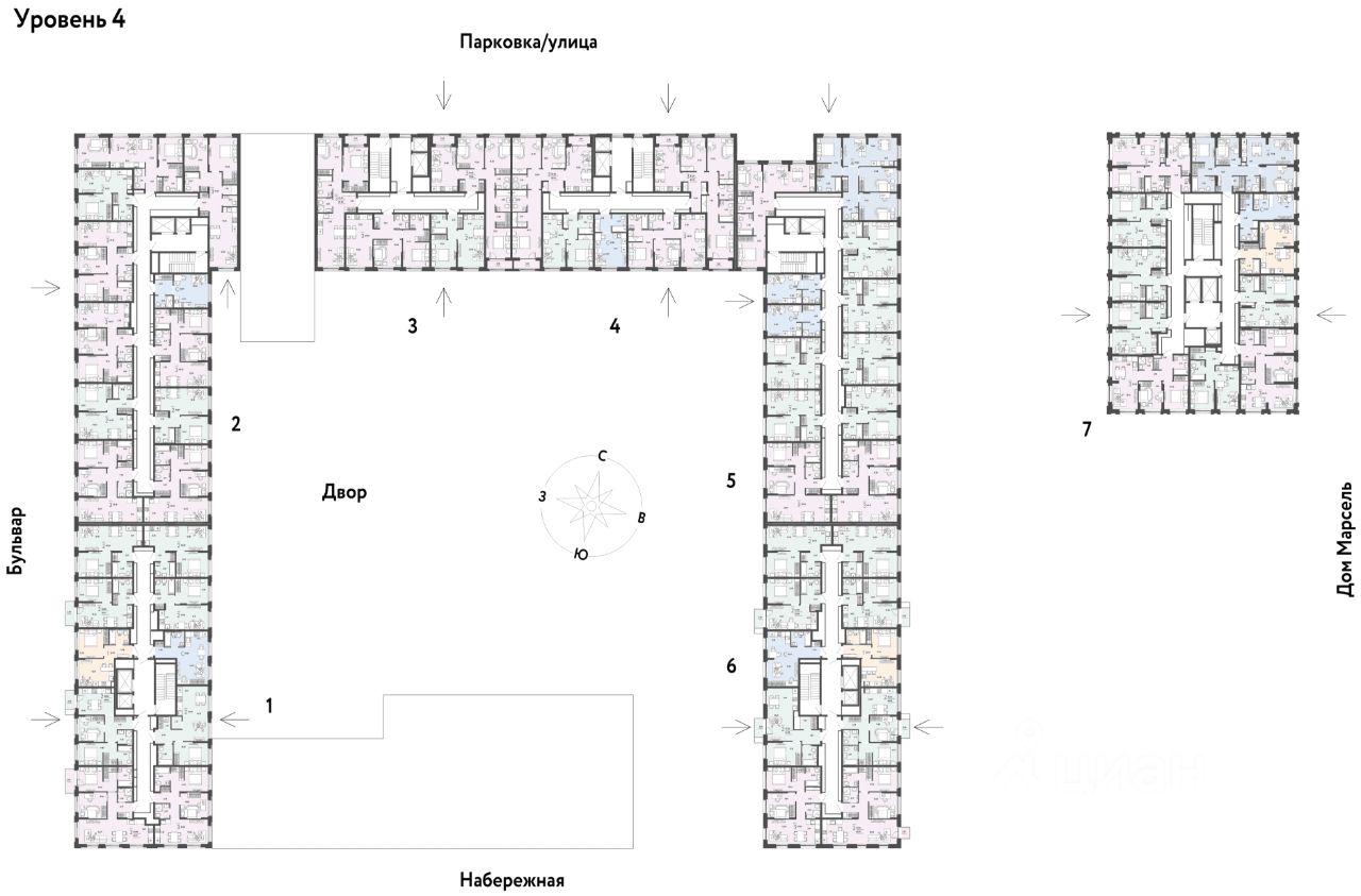 Разнообразие планировок: от классических до квартир с мастер-спальней и террасами.