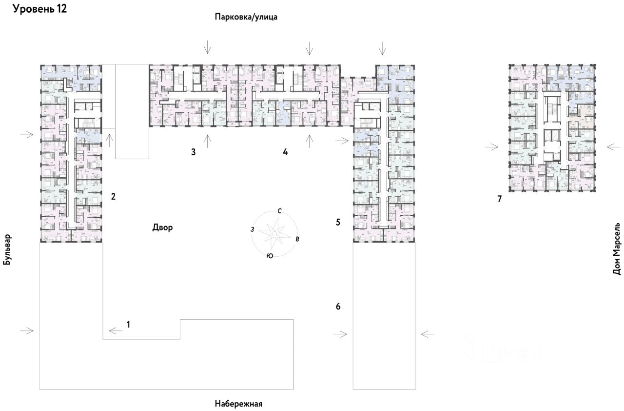 Разнообразие планировок: от классических до квартир с мастер-спальней и террасами.