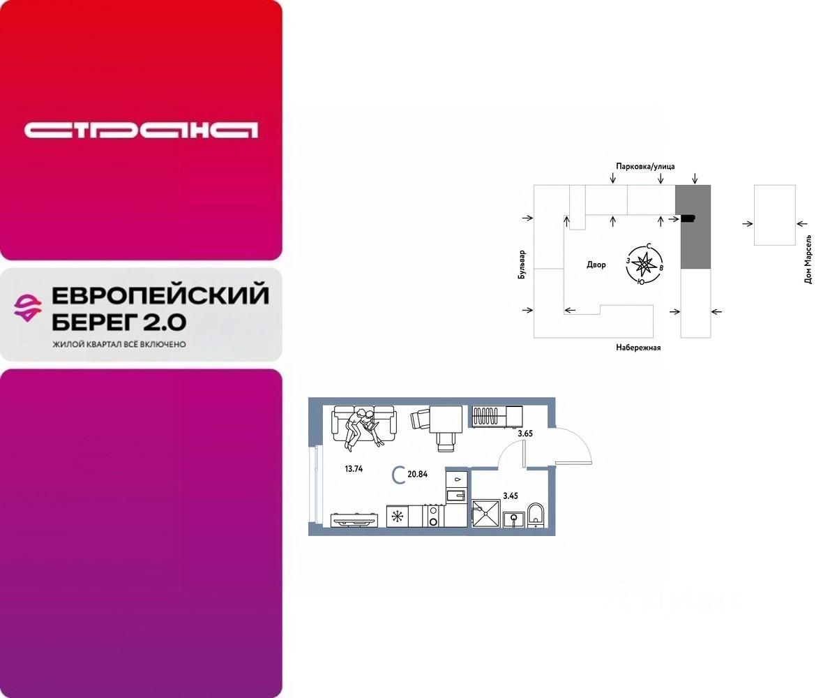Продается 1комнатная квартира на 12 этаже от застройщика Страна Девелопмент. Площадь квартиры 20,84 кв. м. Стоимость указана без учета акций.