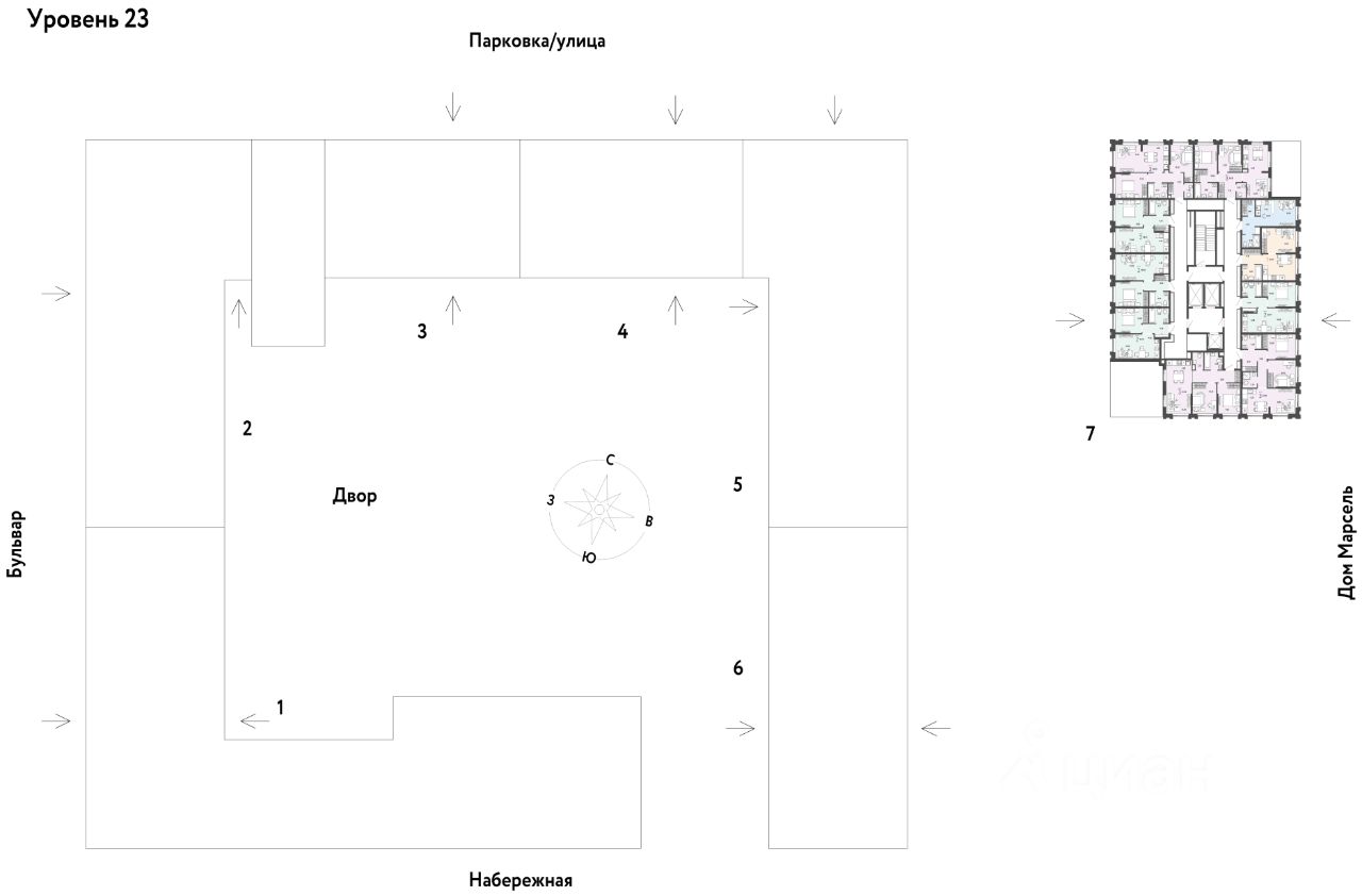 Разнообразие планировок: от классических до квартир с мастер-спальней и террасами. Подземный паркинг с кладовыми, охраной и видеонаблюдением 24/7. Ремонт от застройщика: 5 вариантов на выбор. Закрытый двор с площадками и зонами отдыха: мост-акведук, тренажёры, лабиринты, гамаки и шезлонги.