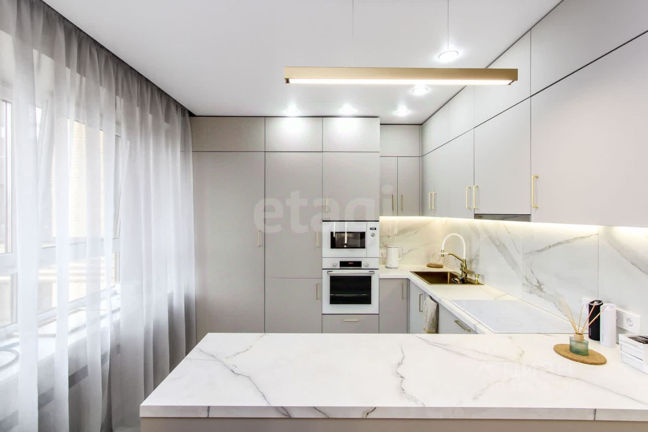 Ремонт выполнен с безупречным дизайнерским вкусом в современных, стильных тонах, что создаёт ощущение гармонии и комфорта. Большая часть мебели остаётся в квартире, что позволит вам сразу же насладиться новым пространством без лишних затрат и хлопот.