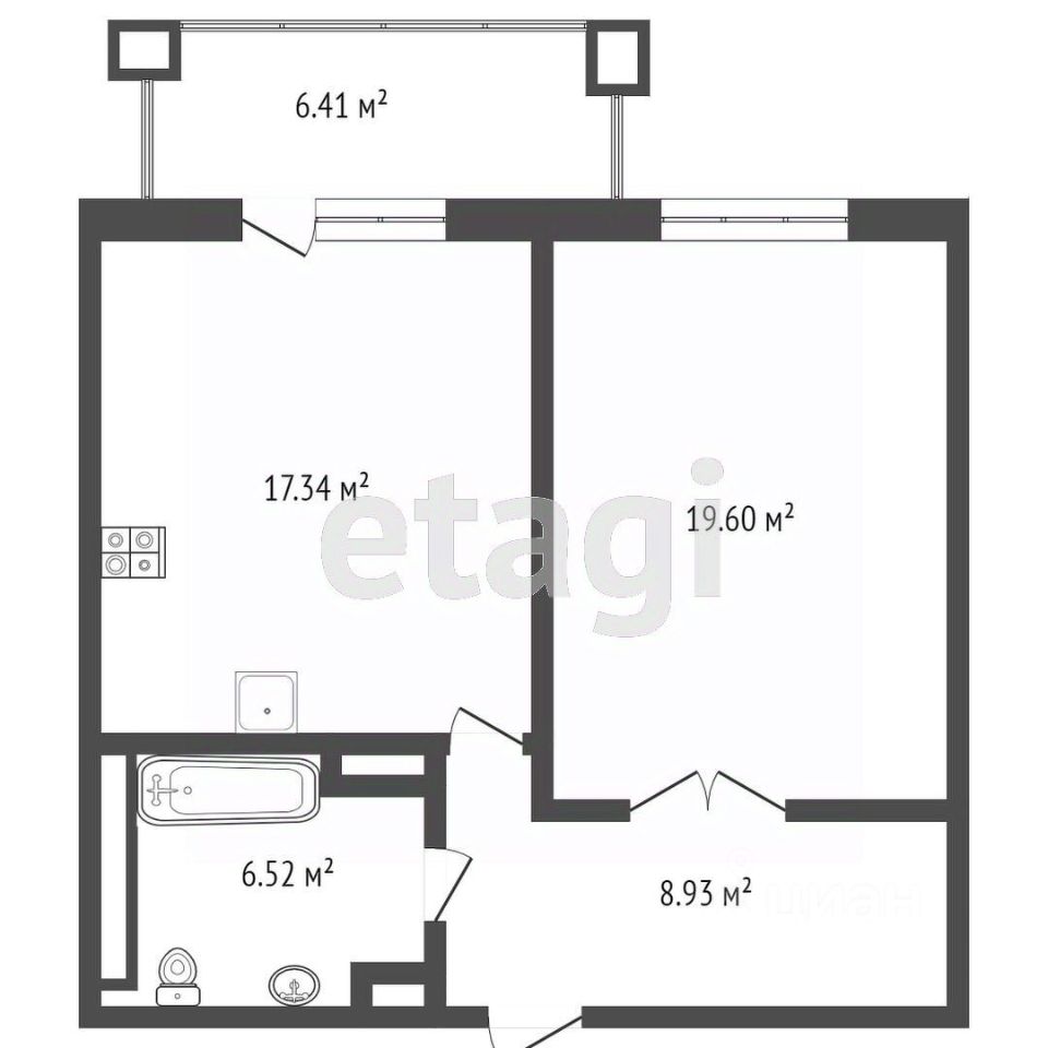 Квартира предлагает просторную кухню-гостиную площадью 19,6 м², где вы сможете проводить время с семьёй и друзьями, а также спальню размером 17,3 м².