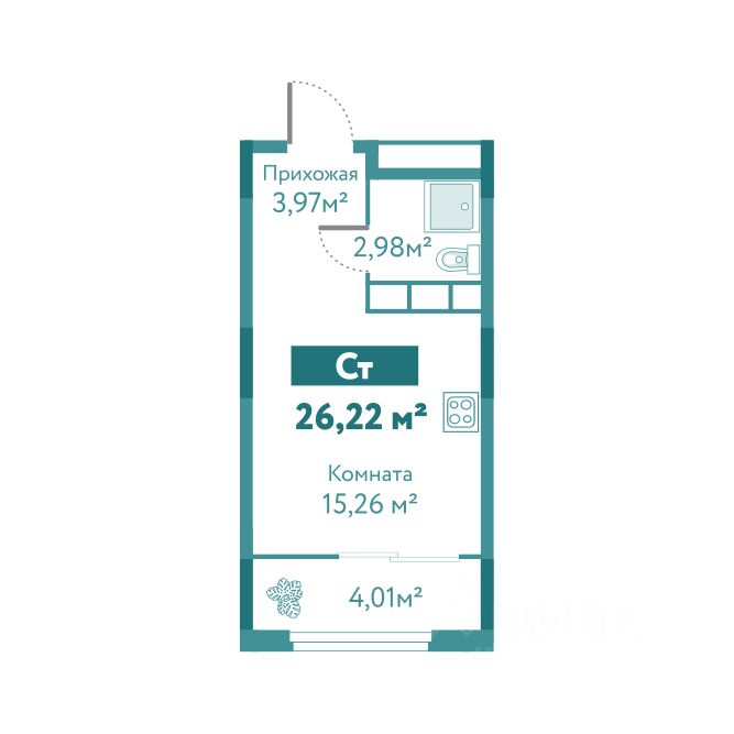 Общая площадь26,22 м2