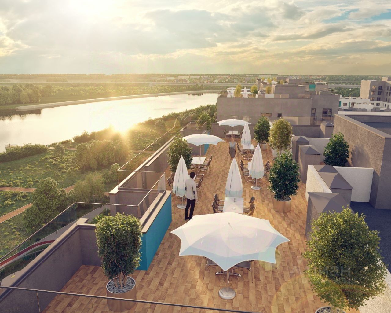 Предусмотрена каскадная застройка и множество вариантов планировок: от квартир с террасами и уютных студий до просторных квартир хайфлет. Из окон открывается потрясающий вид на реку.