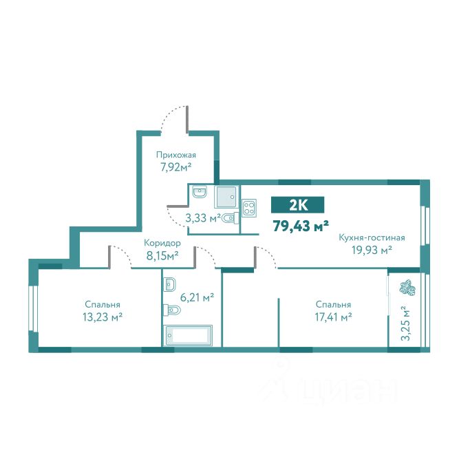 Общая площадь79,43 м2