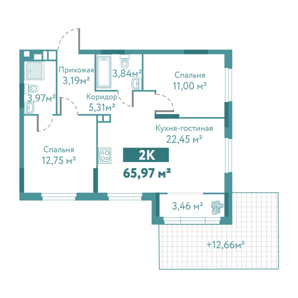 Общая площадь65,97 м2